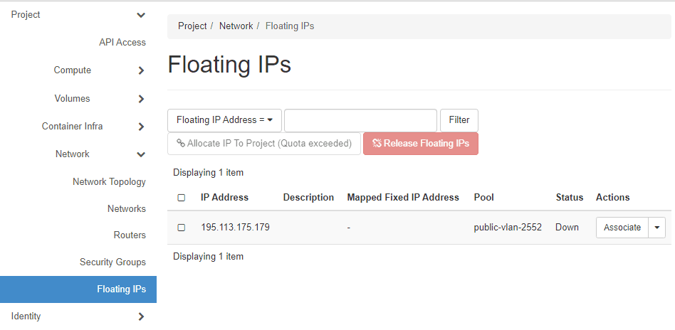 Click on the Associate button next to the floating IP.