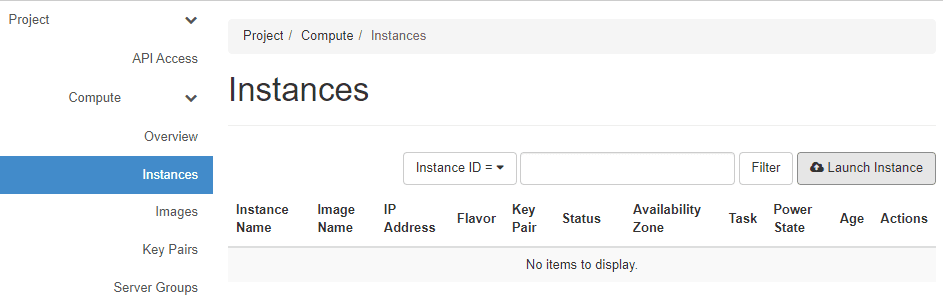 In Compute > Instances, click Launch Instance.