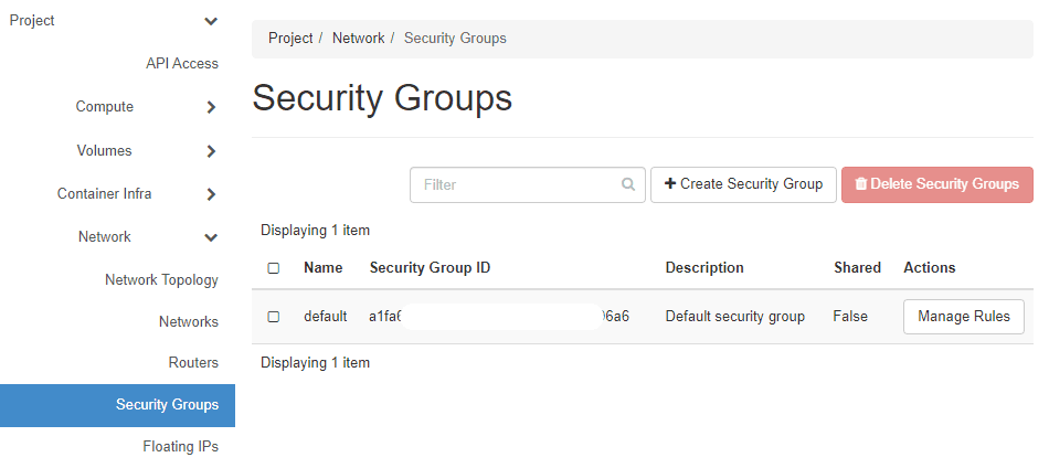 Select the network and continue to Security Groups.