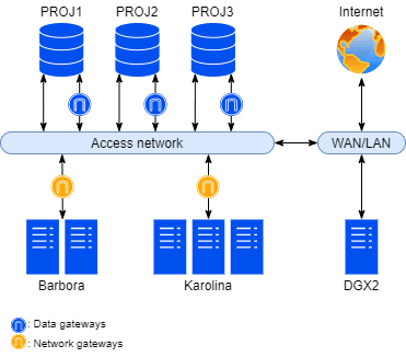 PROJECT file storages are accessible at mountpoints /mnt/proj1, /mnt/proj2, and /mnt/proj3.